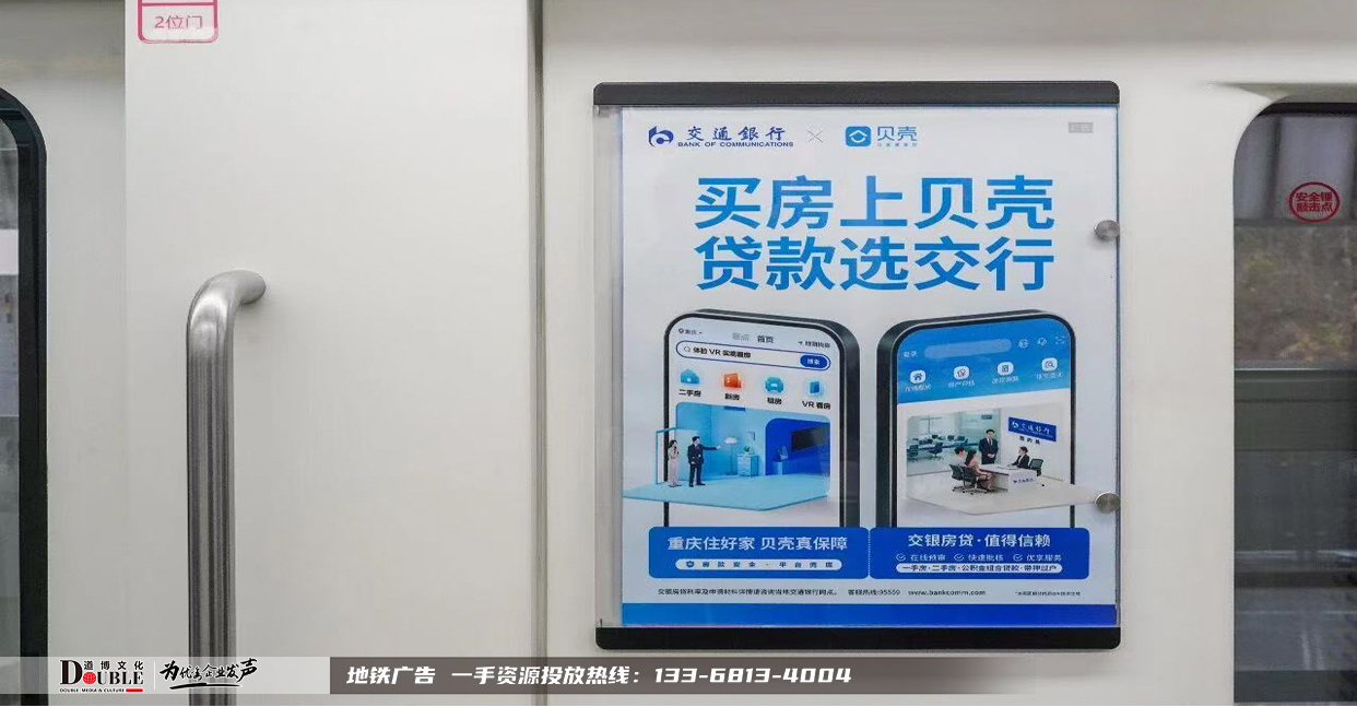此次品牌专列覆盖重庆轨道交通人流量密集的主干线,日均触达乘客超百万人次。车厢内外统一采用高饱和度视觉设计,融合贝壳的科技感与交行的稳健形象,配合“线上选房+线下贷款”无缝衔接的服务理念,让“买房上贝壳,贷款选交行”这一口号深入人心。不少市民表示:“每天坐地铁都能看到,不知不觉就记住了,以后买房真会优先考虑这个组合。